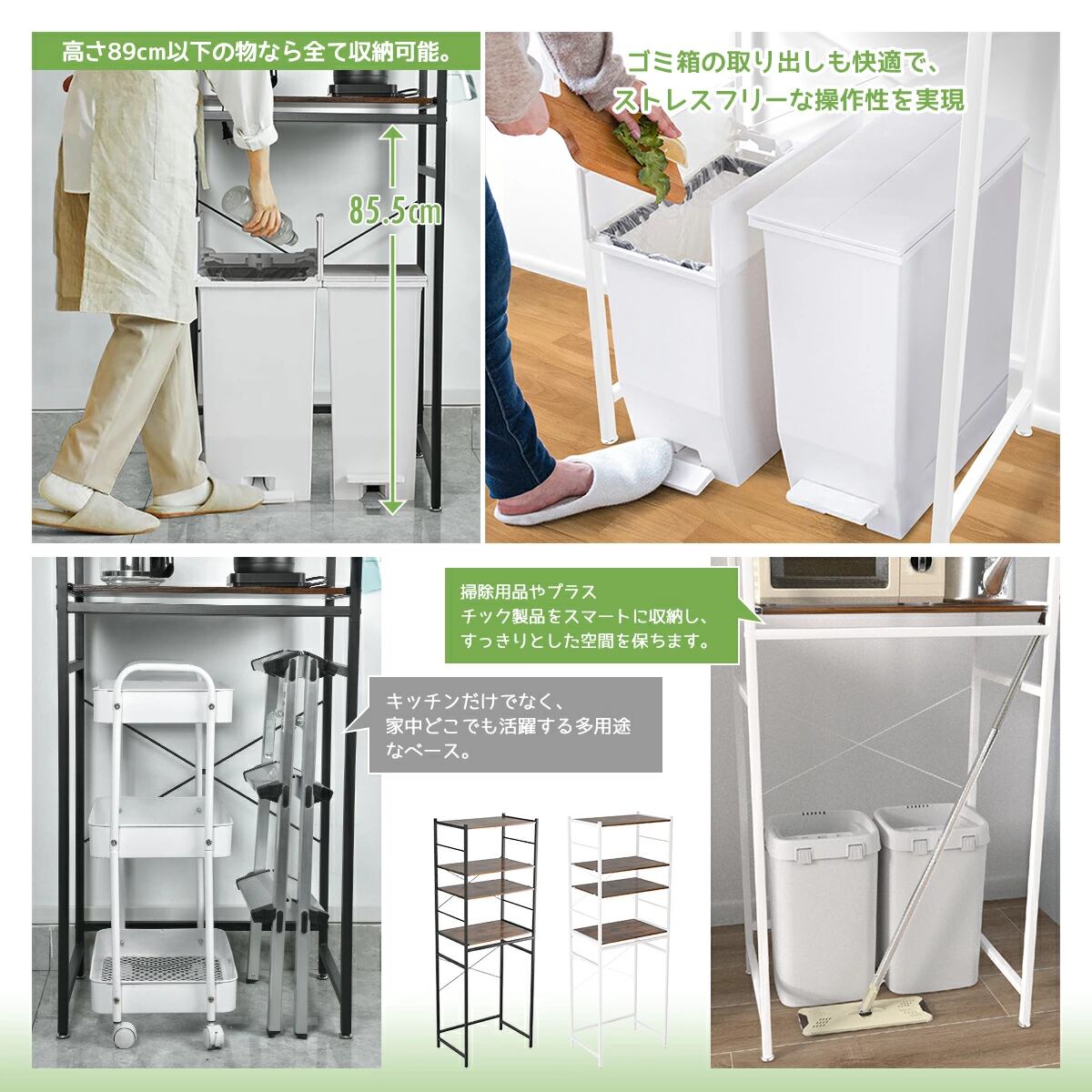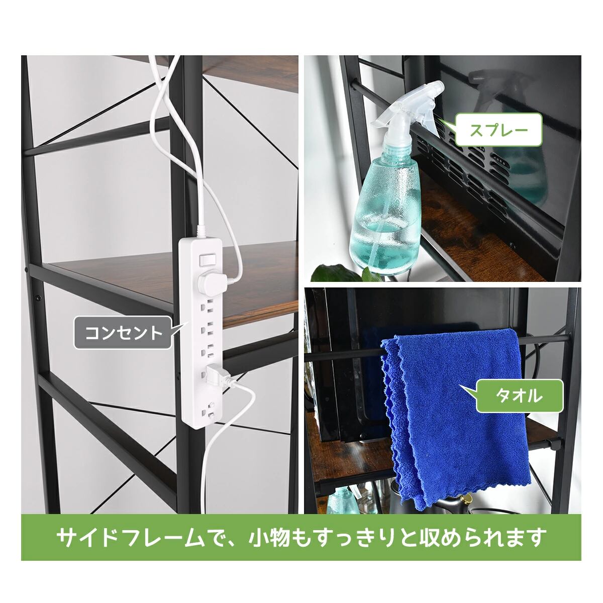 このレンジ台は、シックな木目調デザインが特徴で、キッチンやダイニングに温かみを与えます。4段の収納スペースを活用することで、電子レンジやトースターを効率的に配置でき、作業スペースを広げることが可能です。耐久性のある素材を使用しており、しっかりとしたつくりになっていますので、安定性も抜群です。さらに、設置も簡単で、どなたでも手軽にお使いいただけます。