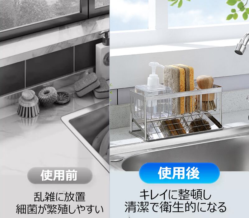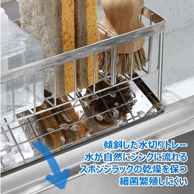 コンパクトなサイズながらも、高い収納力を誇るスポンジラックは、あらゆるキッチンにマッチします!スタイリッシュなデザインが、インテリアに華を添え、毎日のお皿洗いをもっとスムーズにする頼もしいアイテムです!