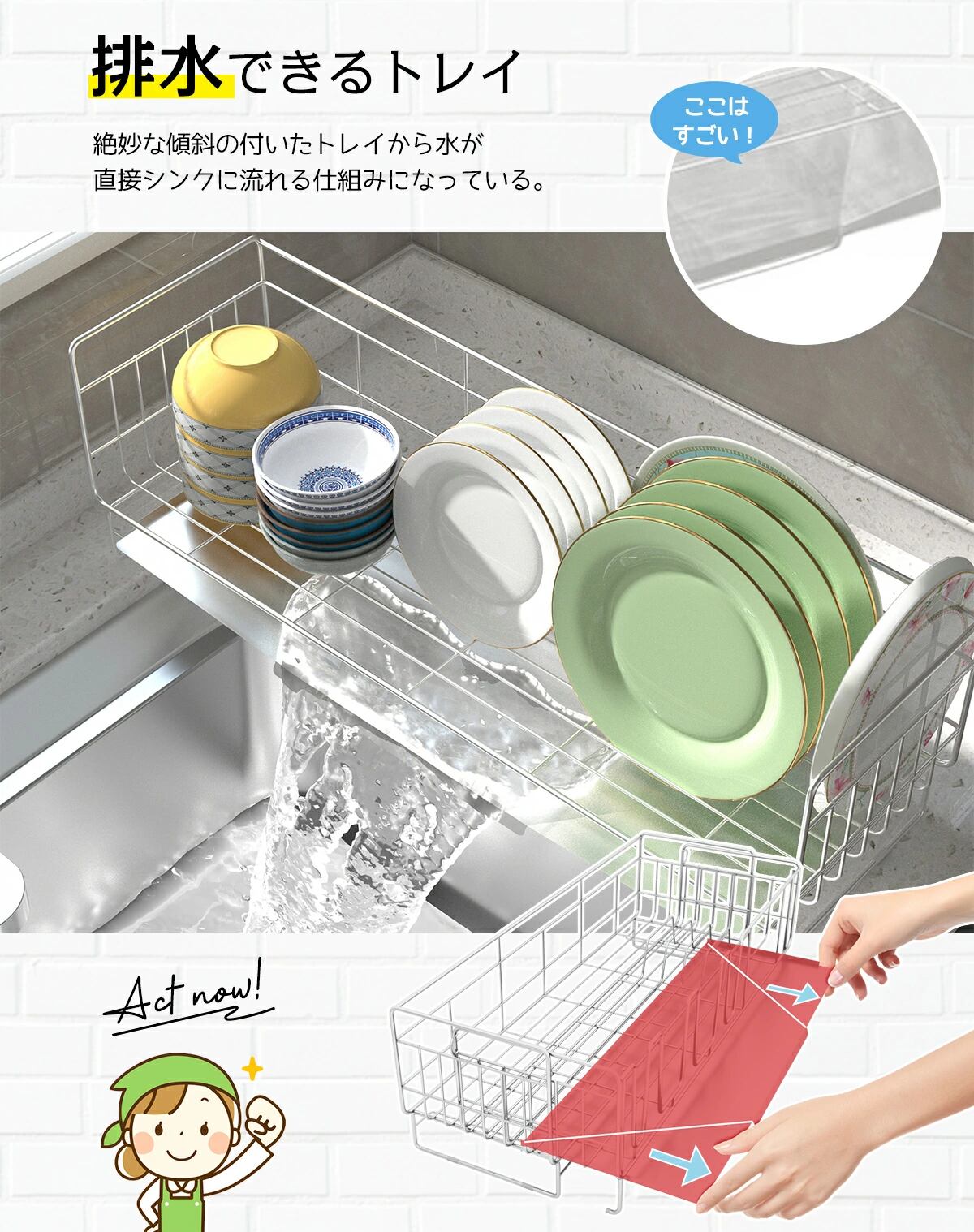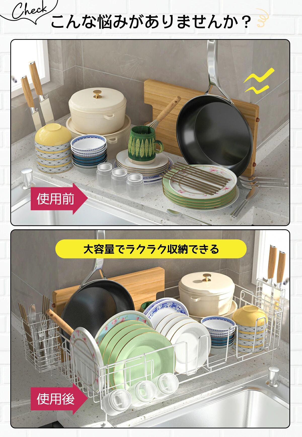 コンパクトながらも優れた収納力を持つ水切りかごは、さまざまなキッチンスタイルにマッチします!シンプルでスタイリッシュなデザインは、インテリアを引き立て、毎日の洗い物をよりスムーズにしてくれる心強いパートナーです!