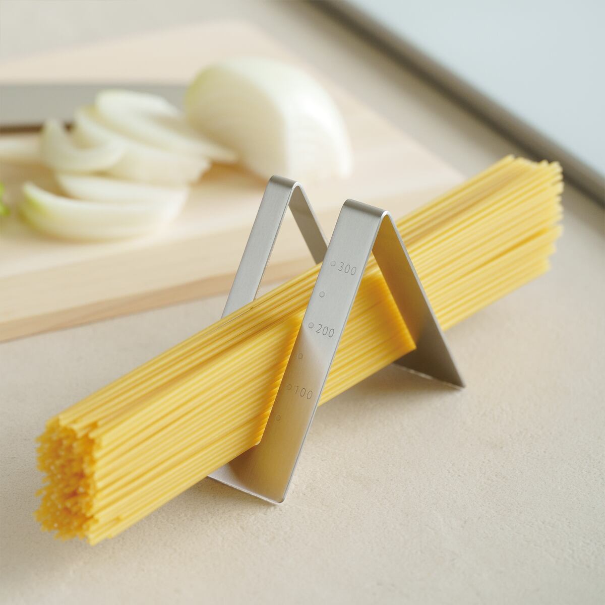 このパスタメジャーは、お好みのパスタ量を瞬時に手軽に測定できる優れたアイテムです。高品質な素材を使用しており、長くご愛用いただけるシンプルで洗練されたデザインが魅力です。