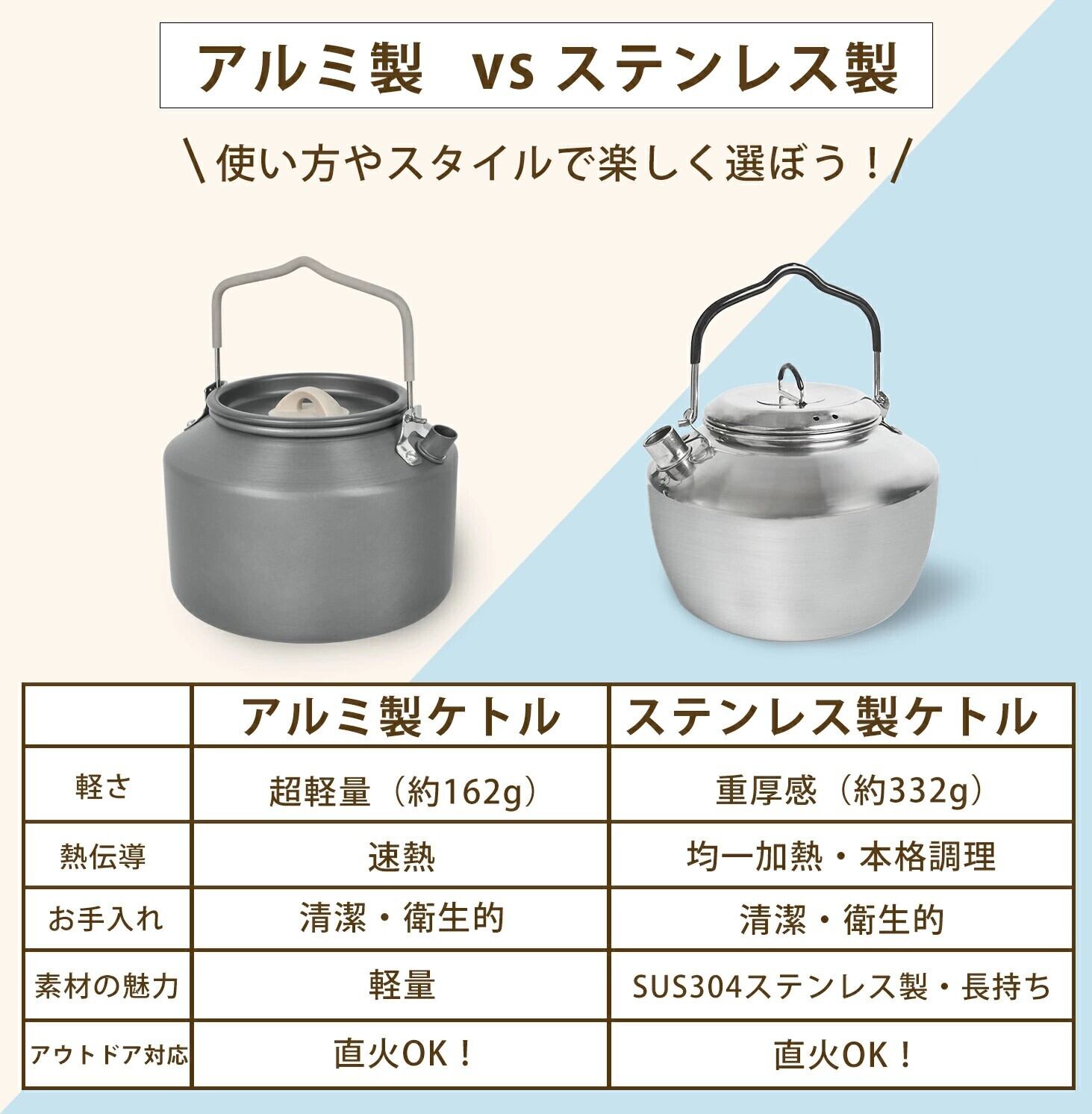自然の中で快適に過ごすためのアウトドアケトル!